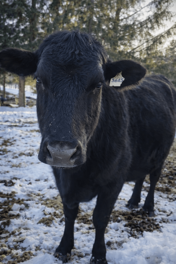La même journée, ma vache Carmenne se met à courir et à sauter partout autour de nous. Je soupçonne immédiatement qu’elle est en chaleur. Je la rentre dans l’écurie avec les chèvres et je contacte l’inséminateur pour qu’il vienne le lendemain matin.
